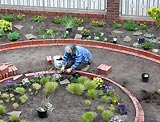 ab 2009 Das Waldbeet wird im großen Bogen zur Mitte erweitert, eingefasst mit Schieferplatten. |