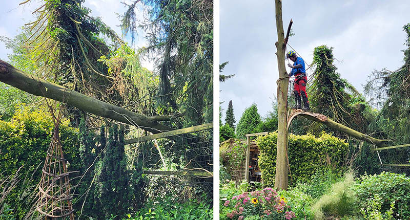 Im Juni 2024 hat ein Gewittersturm unsere Gleditsie gespalten. Die halbe Krone kippte aufs Nachbargrundstück. Der Rest war nicht mehr stabil und daher nicht mehr zu retten. |