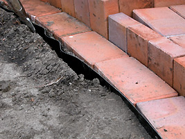 unmöglich, darunter die Ziegelkante zu setzen und der neue Rasen hätte